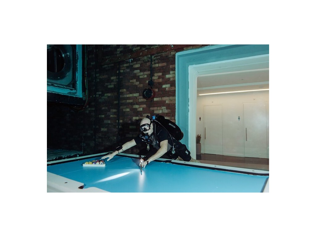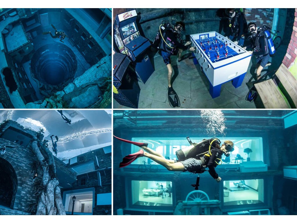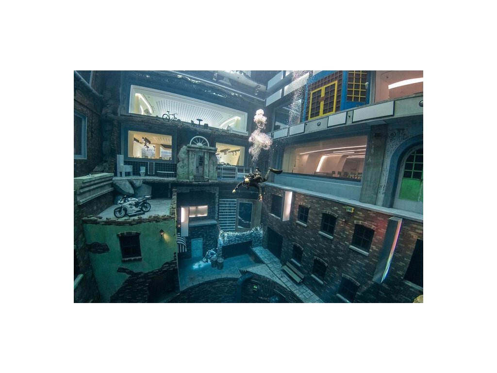 "Potopené město" = zahraj si pod vodou šachy, kulečník, automaty, projeď se na motorce, v Mercedesu, ochutnej popcorn, zatelefonuj si z telefonní budky, projdi se po schodech... , uvidíš pod vodou vybavenou kuchyň, obývák, koupelnu... - je tam prostě na co si vzpomeneš 😉